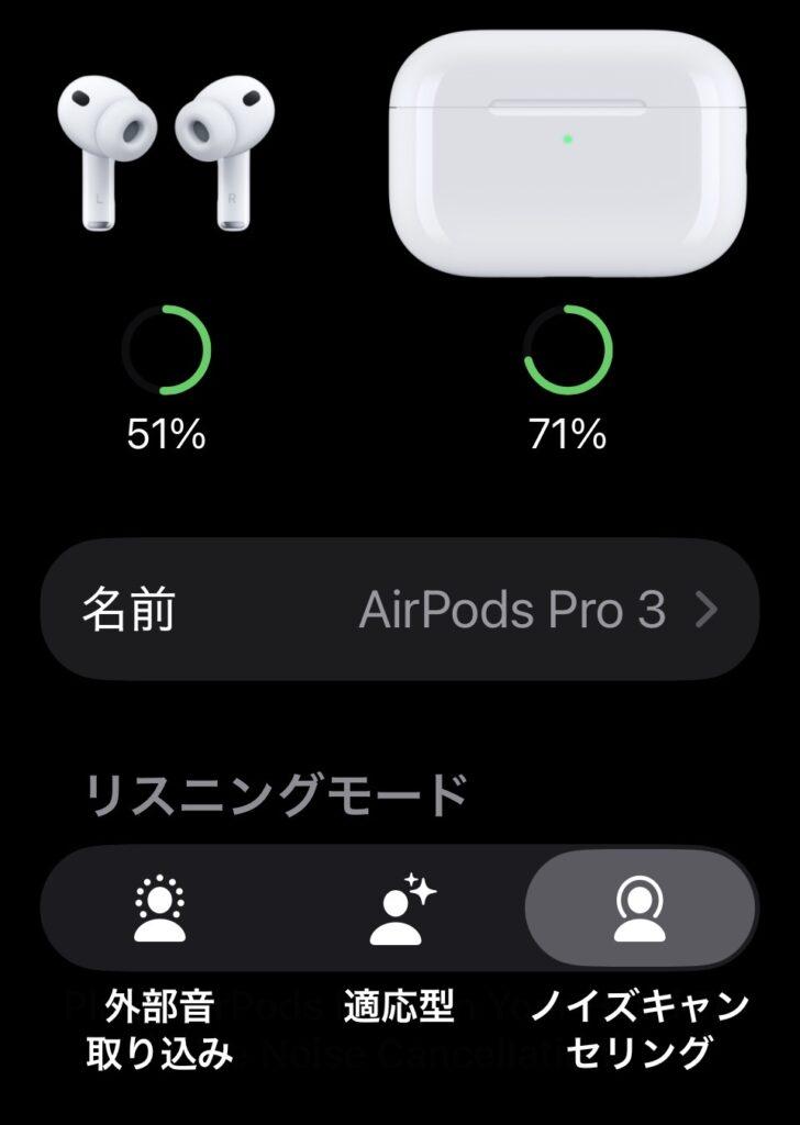 わたしは「Pro 2」の時点でNC性能は十分満足できるレベルだと思っていましたが、それをさらに超える改良は、競合するノイズキャンセリングイヤホンと比較しても、「Appleの技術力が一歩抜きん出ている」と唸らせる部分です。